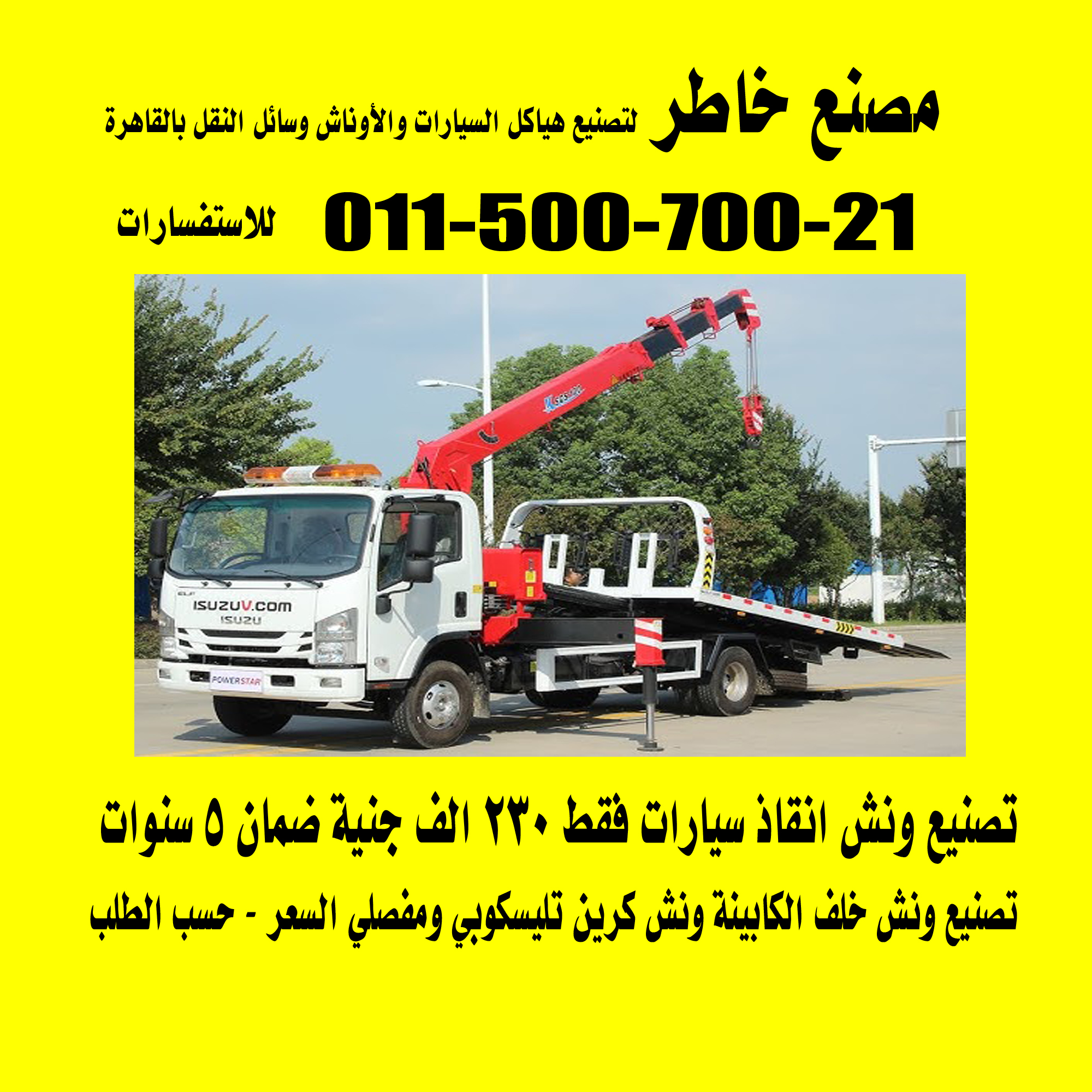 سعر تصنيع ونش انقاذ سيارات 230.000 الف جنية مصري .